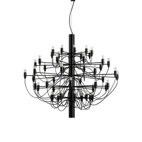 2097/30 de la marque italienne Flos est une autre œuvre d'art moderne. Ce magnifique lustre utilise des fils visibles pour créer un aspect qui rappelle les poteaux téléphoniques et les grandes installations électriques. Le look moderne s'impose et un lustre 2097/30, comme les lampes Ingo Maurer, est un excellent moyen d'introduire de la créativité dans la pièce.