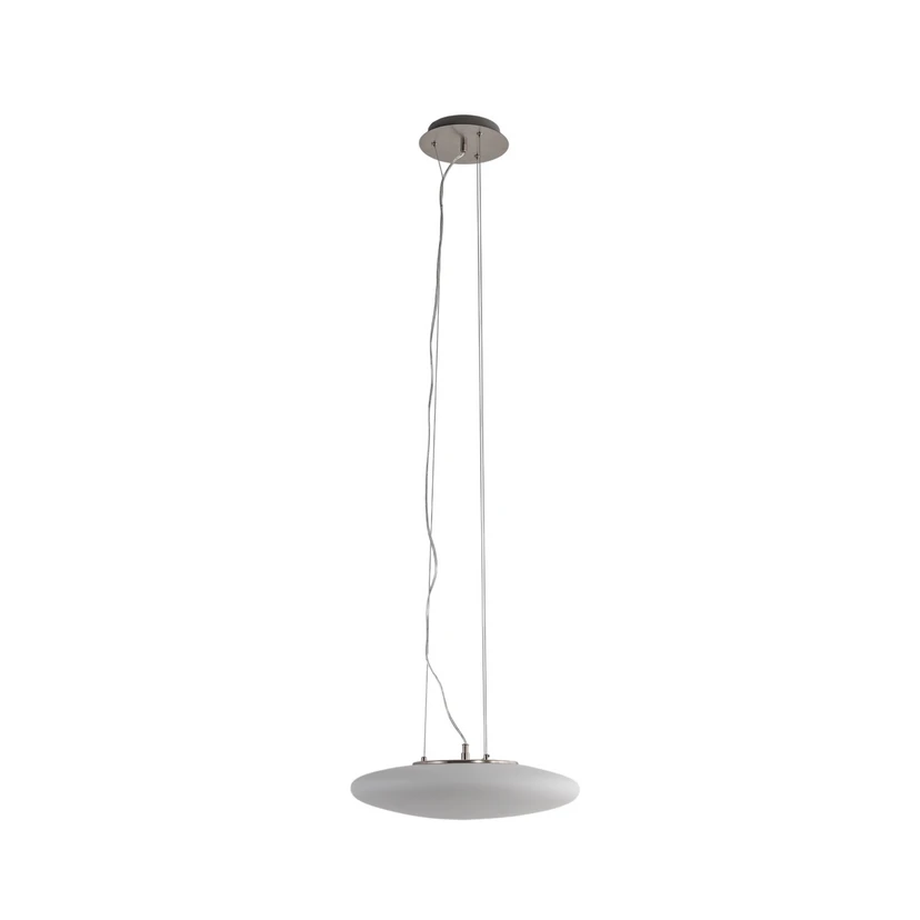 Gunda LED Suspension Opale/Nickel embellit l'intérieur avec son design élégant tout en enrichissant la maison avec son éclairage pratique et son design fonctionnel avec des options de personnalisation de la lumière pour répondre à tous les besoins. La Lampe présente un design moderne et simple composé d'un cadre métallique avec une belle finition nickel et d'un abat-jour en verre opale blanc pour un éclairage doux et sans éblouissement. À l'intérieur de l'Abat-jour se trouve une source lumineuse LED intégrée qui convertit efficacement l'électricité en de grandes quantités de lumière. L'ensemble de l'Abat-jour s'allume lorsque la lampe est Interrupteur, offrant ainsi un éclairage polyvalent pratique dans la pièce.
